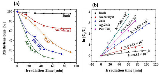 - Rajaboopathi, S.; Thambidurai, S. Enhanced Photocatalytic Activity of Ag-ZnO Nanoparticles Synthesized by Using Padina gymnospora Seaweed Extract. J. Mol. Liq. 2018, 262, 148–160. [Google Scholar] [CrossRef]
