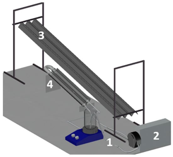 The set up for the CPC reactor. (1) Solution mixing and sampling; (2) Peristaltic pump; (3) Irradiation source; (4) CPC reactor.