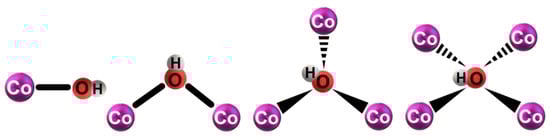 Models of the hydroxyl ions coordinated to the cobalt ions in the process of water oxidation.