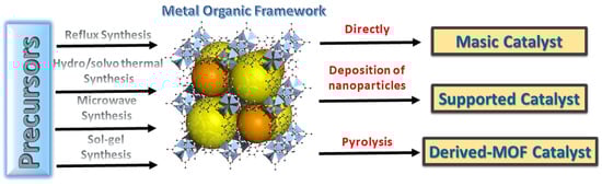 Summary of main routes to obtain catalysts based on MOFs.