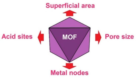 Platform compounds found in biomass can undergo diverse transformations depending on the type of reaction in which they are involved. Hydrogenation or reduction reactions are useful to obtain alcohol from carbonyl compounds [68] or saturated hydrocarbons by cleavage of C–O bonds [69,70]. Herein, we present the properties of MOFs, which directly influence the behaviour of hydrogenation reactions of biomass platform compounds (Figure 3).