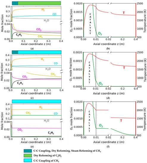 - Savchenko, V.I.; Nikitin, A.V.; Sedov, I.V.; Ozerskii, A.V.; Arutyunov, V.S. The role of homogeneous steam reforming of acetylene in the partial oxidation of methane to syngas in matrix type converters. Chem. Eng. Sci. 2019, 207, 744–751. [Google Scholar] [CrossRef]