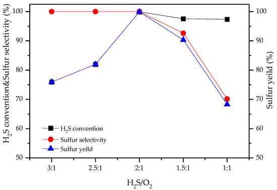 3.1.3. Effect of the H2S/O2 Molar Ratio