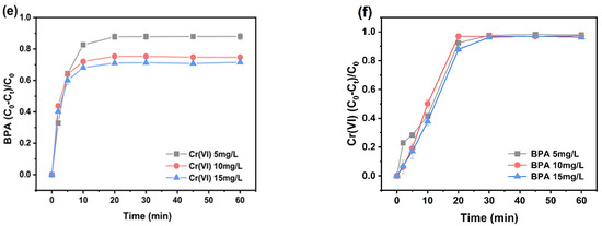 3.2. Cr(VI) and BPA Removal in Different Systems