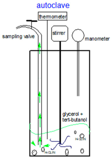 The catalytic testing of HCLIN catalysts in etherification of glycerol with tert-butanol in the liquid phase was carried in Teflon-lined stainless-steel autoclaves under autogenous pressure at elevated temperatures (Figure 2). Before catalytic testing, the samples were pre-treated in flowing helium at 110 °C to remove loosely bound ammonia and water.