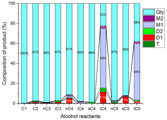 Comparison of the etherification of glycerol with different alcohols over HCLIN300 (Reaction condition: 140 °C, 2 h).