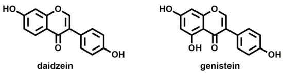 Molecular structures of the most common natural phytoestrogens: daidzein and genistein.