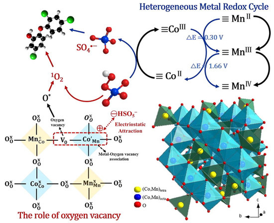 - Chen, Z.; Bi, S.; Zhao, G.; Chen, Y.; Hu, Y. Enhanced Degradation of Triclosan by Cobalt Manganese Spinel-Type Oxide Activated Peroxymonosulfate Oxidation Process via Sulfate Radicals and Singlet Oxygen: Mechanisms and Intermediates Identification. Sci. Total Environ. 2020, 711, 134715. [Google Scholar] [CrossRef]