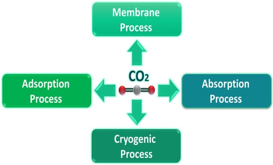 Post-combustion processes have been developed, including membrane separation, cryogenic fractionation, solvent absorption, and adsorption using solid sorbent []. In addition, post-combustion carbon dioxide-based adsorption is one of the most cost-effective processes, whether by physical or chemical methods [].