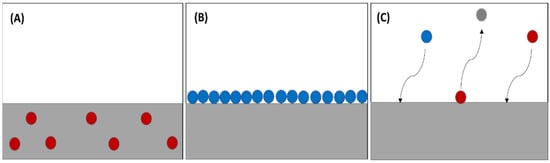 (A) Absorption process, (B) adsorption process, (C) sorption process.