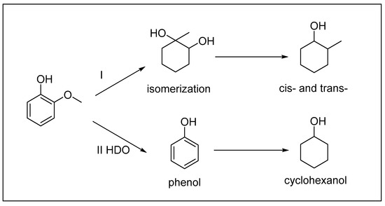 46. Nakagawa, Y.; Ishikawa, M.; Tamura, M.; Tomishige, K. Selective production of cyclohexanol and methanol from guaiacol over Ru catalyst combined with MgO. Green Chem. 2014, 16, 2197–2203. [Google Scholar] [CrossRef]