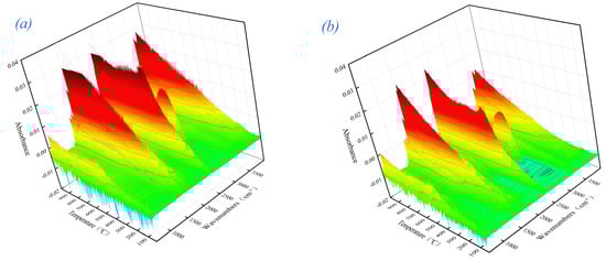 Three-dimensional infrared spectra of coal samples ((a): infrared spectra of SGT-1, (b): infrared spectra of SGT-4).