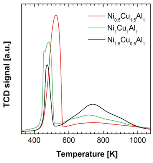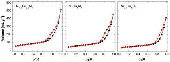 | Calcined Material | Ni/Al (mol/mol) | Cu/Al (mol/mol) | Ni/Al (mol/mol) | Cu/Al (mol/mol) | Ni/Al (mol/mol) | Cu/Al (mol/mol) |