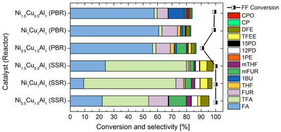 - Chen, S.; Wojcieszak, R.; Dumeignil, F.; Marceau, E.; Royer, S. How catalysts and experimental conditions determine the selective hydroconversion of furfural and 5-hydroxymethylfurfural. Chem. Rev. 2018, 118, 11023–11117. [Google Scholar] [CrossRef] [PubMed] [Green Version]