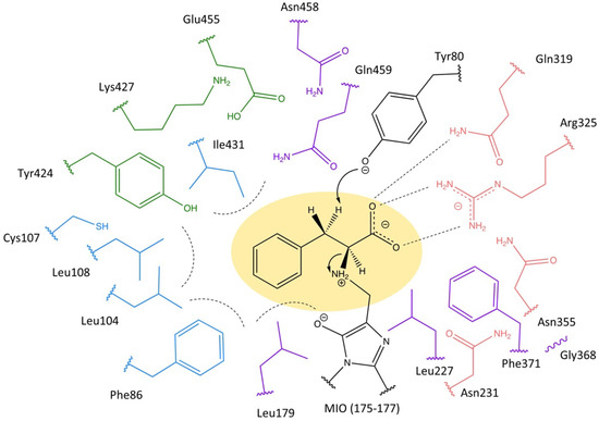 - Nagy, E.Z.A.; Tork, S.D.; Lang, P.A.; Filip, A.; Irimie, F.D.; Poppe, L.; Toşa, M.I.; Schofield, C.J.; Brem, J.; Paizs, C.; et al. Mapping the Hydrophobic Substrate Binding Site of Phenylalanine Ammonia-Lyase from Petroselinum crispum. ACS Catal. 2019, 9, 8825–8834. [Google Scholar] [CrossRef]