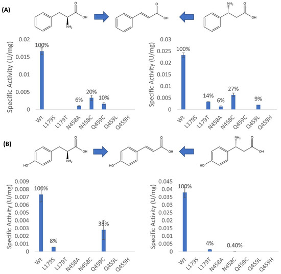 - Bartsch, S.; Wybenga, G.G.; Jansen, M.; Heberling, M.M.; Wu, B.; Dijkstra, B.W.; Janssen, D.B. Redesign of a phenylalanine aminomutase into a phenylalanine ammonia lyase. ChemCatChem 2013, 5, 1797–1802. [Google Scholar] [CrossRef]