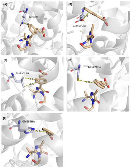 | 5 | Cys107, Tyr424, Lys427, Glu455, Gln459 | Influence on the neighboring Residues | [22], this work |