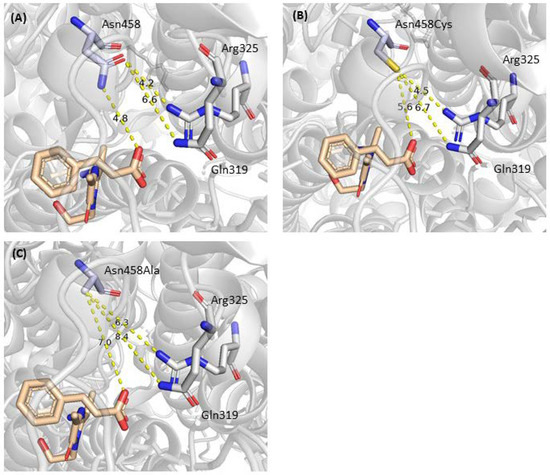 | 3 | Asn231, Gln319, Arg325, Asn458 | Carboxylate Binding | [20], this work |