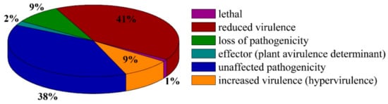 As for potential pathogenesis-related proteins of T. asperellum ND-1 secretome, 175 secreted proteins identified within the PHI database were assigned to various categories. Among them, 81 (41%) proteins were associated with reduced virulence, (76) 38% proteins were of unaffected pathogenicity, (18) 9% proteins were related to increased virulence (hypervirulence), and (18) 9% were related to loss of pathogenicity (Figure 2). Cytochrome P450 (CYP450) monooxygenase superfamily is involved in numerous metabolisms of the filamentous fungi, including secondary metabolites, lifestyle, and pathogenicity [54,55,56]. In T. asperellum ND-1, 163 CYP proteins were confirmed, of which 99 showed homologous counterparts in the PHI database.