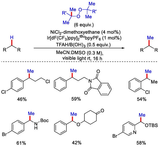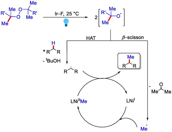 Ir–Ni dual photocatalytic C(sp3)−H methylation using peroxide.