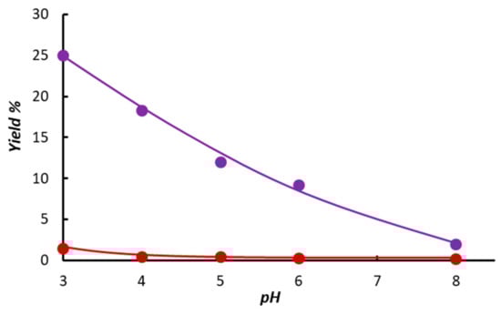 It is seen from Figure 1, that on addition of NaI, the reaction proceeded with a high rate, and conversions above 90% were observed in strongly acidic solutions in contrast with the conversions below 10% in the absence of NaI under otherwise identical conditions. However, Figure 1 also reveals, that in basic solutions (9 ≥ pH ≥ 12), conversions around 25% were achieved independent of the absence or presence of NaI in the reaction mixture.