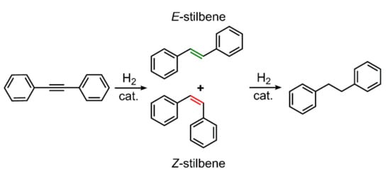 Selective catalytic hydrogenation of alkynes to alkenes attracts a great deal of interest, since alkenes are potential starting materials for production of chemicals containing almost any kind of substituents [1,2,3,4,5,6,7,8,9,10]. In addition, semihydrogenation of alkynes in olefins removes potentially harmful impurities but avoids the waste of alkenes via hydrogenation of C=C double bonds.