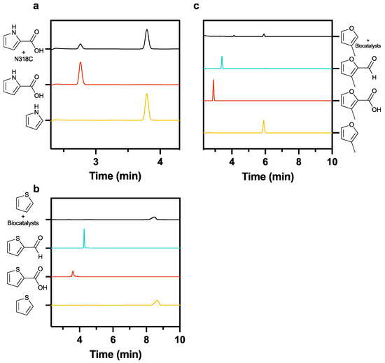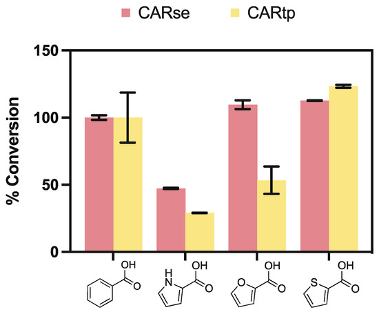 2.1. Screening of Carboxylic Acid Reductases for Activity towards Five-Membered Heterocyclic Carboxylic Acids