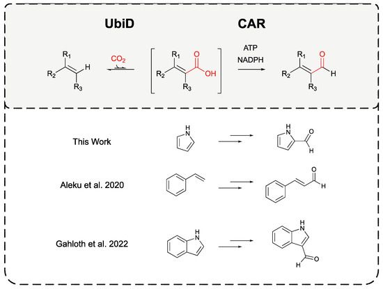 Chicago/Turabian StyleTitchiner, Gabriel R., Stephen A. Marshall, Herkus Miscikas, and David Leys. 2022. "Biosynthesis of Pyrrole-2-carbaldehyde via Enzymatic CO2 Fixation" Catalysts 12, no. 5: 538. https://doi.org/10.3390/catal12050538