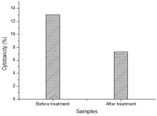 Cytotoxicity analysis of Reactive Yellow 160A before and after treatment (TiO2 = 450 mg/L, RY-160A = 30 mg/L, H2O2 = 0.8 mL, irradiation time = 120 min).