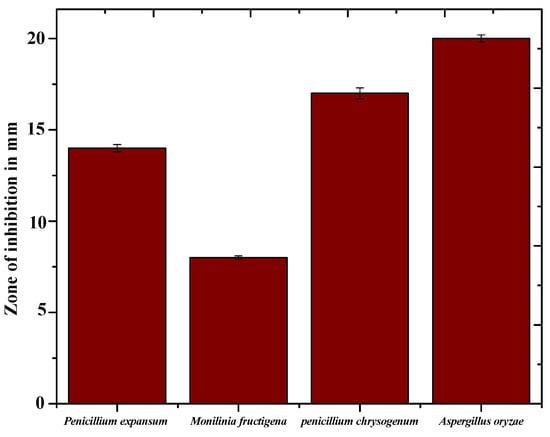 2.3.3. Anti-Spoil Activity of NPs against Spoil-Causing Fungal Isolate Species