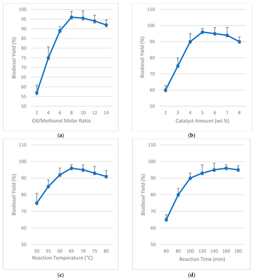 The following Equation (1) is used for the calculation of biodiesel yield [69].