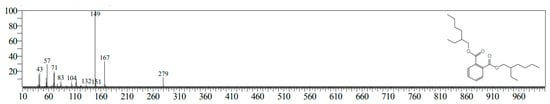 Comp Name: Bis(2-ethylhexyl) phthalate, Run Time: 21.973, Mol Weight: 390.