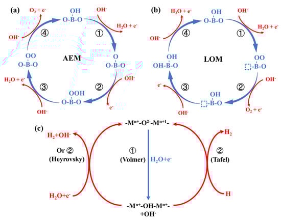 - Grimaud, A.; Diaz-Morales, O.; Han, B.; Hong, W.T.; Lee, Y.L.; Giordano, L.; Stoerzinger, K.A.; Koper, M.T.M.; Shao-Horn, Y. Activating lattice oxygen redox reactions in metal oxides to catalyse oxygen evolution. Nat. Chem. 2017, 9, 457–465. [Google Scholar] [CrossRef] [PubMed]