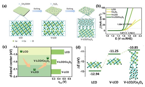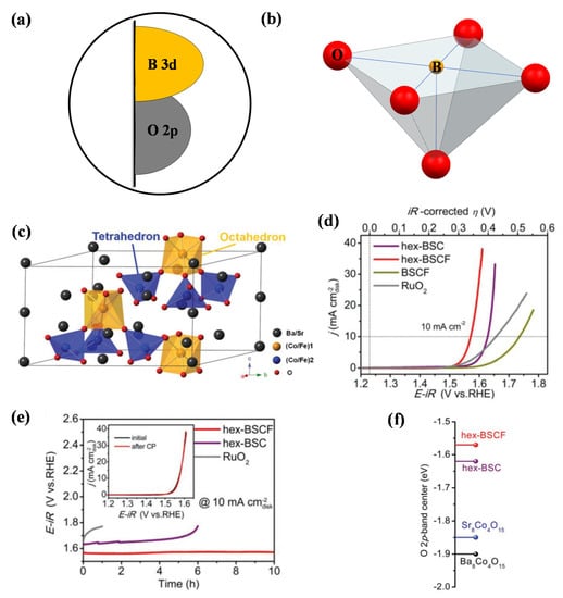 - Wang, X.; Dai, J.; Zhou, C.; Guan, D.; Wu, X.; Zhou, W.; Shao, Z. Engineering charge redistribution within perovskite oxides for synergistically enhanced overall water splitting. ACS Mater. Lett. 2021, 3, 1258–1265. [Google Scholar] [CrossRef]