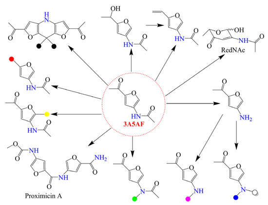 Some useful derivatives from 3A5AF, where the colored circles represent different chemical groups. Reproduced with permission from Ref. [19], copyright Wiley.
