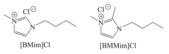 Because of unique characteristics, ionic liquids can act as both solvent and catalyst. Drover et al. [54] demonstrated the direct conversion of GlcNAc to 3A5AF in ionic liquids, giving 34 mol% and 33 mol% yields of 3A5AF in 1-butyl-3-methylimidazolium chloride ([BMim]Cl) and 1,2-dimethyl-3-butylimidazolium chloride [BMMim]Cl, respectively, in the absence of any other catalysts or additives (Table 4, entry 7–8). The structures of [BMim]Cl and [BMMim]Cl are shown as Scheme 4. The anion of ionic liquid has a significant effect on 3A5AF selectivity, where a chloride counterion was found necessary to form 3A5AF compared to bromide and acetate. Due to the advantages of microwave heating, the reaction time was short as 3 min. The addition of 10 mol% B(OH)3 in [BMim]Cl and the use of oil bath heating gave a 79 mol% yield of 3A5AF for 60 min. Considering the cost and high viscosity, the use of ionic liquid as a medium is uneconomic and difficult to operate.