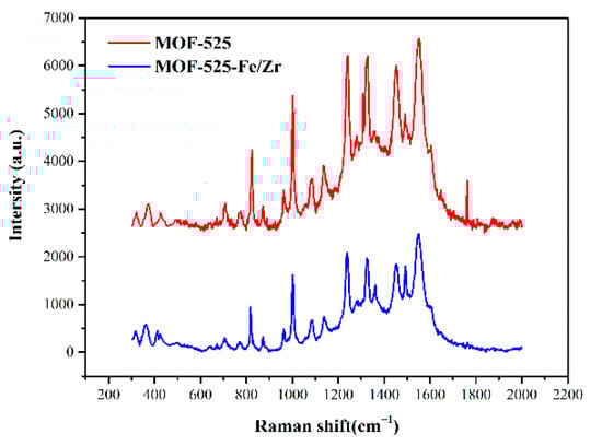 Raman spectra of MOF-525 and MOF-525-Fe/Zr.