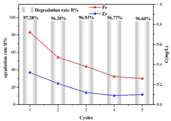 The leaching concentration of iron zirconium ion and degradation efficiency of SMX in five cycles.