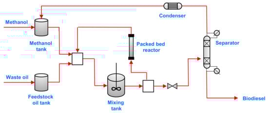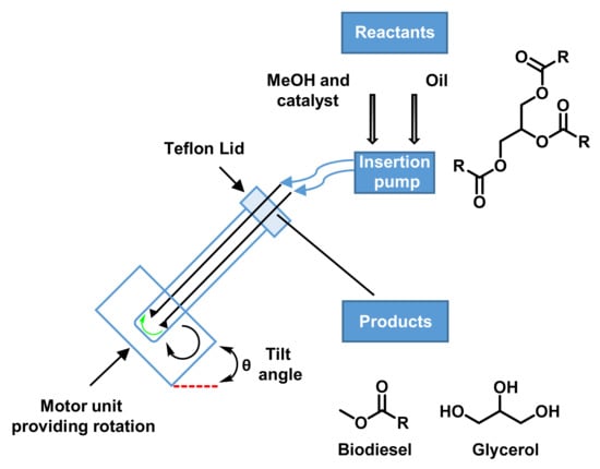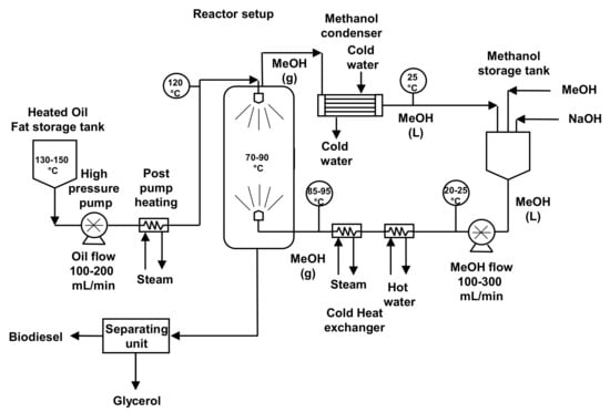Nabetani and coworkers developed a non-catalytic transesterification of triglycerides in a continuous-flow bubble column reactor (Figure 31) [].