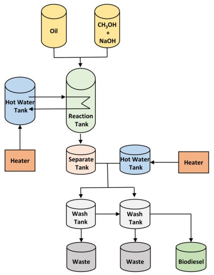 - Sansawang, T.; Chimmanee, C.; Butsing, T. The Continuous Process of Biodiesel Production with Water Heater Assist. J. Sci. Technol. MSU 2016, 35, 362–367. [Google Scholar]