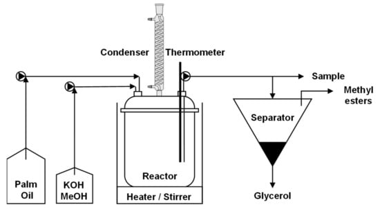 - Darnoko, D.; Cheryan, M. Continuous production of palm methyl esters. J. Am. Oil Chem. Soc. 2000, 77, 1269–1272. [Google Scholar] [CrossRef]