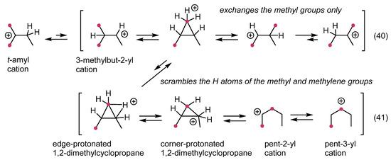 - Saunders, M.; Hagen, E.L. Rapid rearrangements in t-amyl cation and relative sign of coupling constants. J. Am. Chem. Soc. 1968, 90, 2436–2437. [Google Scholar] [CrossRef]