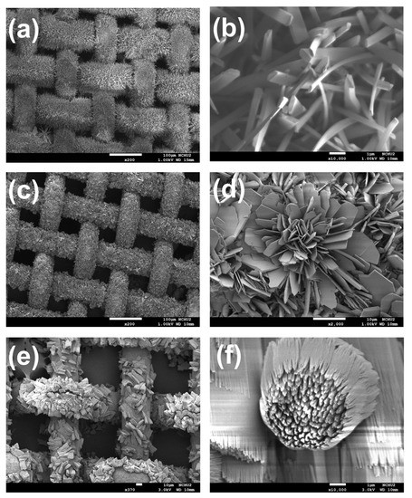 More importantly, this type of CuCF composite should be prepared simply without complex protocols, and the reagents to make these CuCF composites should be more promising and practical. Herein, we propose a facile approach to develop such a CuCF composite by directly using a macroscale Cu mesh to grow nanoscale CuCF on the mesh through a single-step electrochemical synthesis method. The Cu mesh was particularly selected because Cu mesh can be directly used as a source of Cu, and the mesh configuration provides a large surface for growing CuCF to form hierarchical structures, allowing it to be exposed to reactants easily. For instance, Wang et al. claimed to establish a hierarchical material by employing a copper mesh with a macroscale configuration, on which nanoclusters of Cu2O were deposited via an electrochemical method to form a “hierarchical composite” [22]. On the other hand, Guo et al. claimed to build up a hierarchical material by using a stainless steel mesh as a macroscale support, on which nanostructured ZnO nanorod-array was then deposited [23]. Furthermore, Xiong et al. also claimed to develop a hierarchical material by growing a Zr-based MOFs polyacrylonitrile mesh for enhancing activities [24].