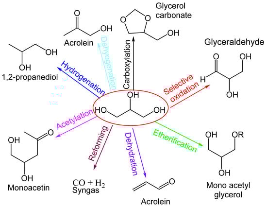 - Anitha, M.; Kamarudina, S.K.; Kofli, N.T. The potential of glycerol as a value-added commodity. Chem. Eng. J. 2016, 295, 119–130. [Google Scholar] [CrossRef]