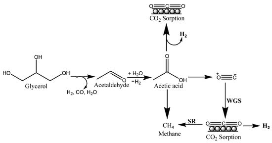 - Ghungrud, S.A.; Vaidya, P.D. Sorption-enhanced reaction process for glycerol-tohydrogen conversion over cobalt catalyst supported on promoted hydrotalcites. Int. J. Hydrogen Energy 2020, 45, 9440–9450. [Google Scholar] [CrossRef]