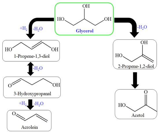 - Simonetti, D.A.; Kunkes, E.L.; Dumesic, J.A. Gas-phase conversion of glycerol to synthesis gas over carbon-supported platinum and platinum–rhenium catalysts. J. Catal. 2007, 247, 298–306. [Google Scholar] [CrossRef]
