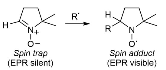 - Ouari, O.; Hardy, M.; Karoui, H.; Tordo, P. Recent developments and applications of the coupled EPR/Spin trapping technique (EPR/ST). In Electron Paramagnetic Resonance; The Royal Society of Chemistry: London, UK, 2010; Volume 22, pp. 1–40. [Google Scholar] [CrossRef]