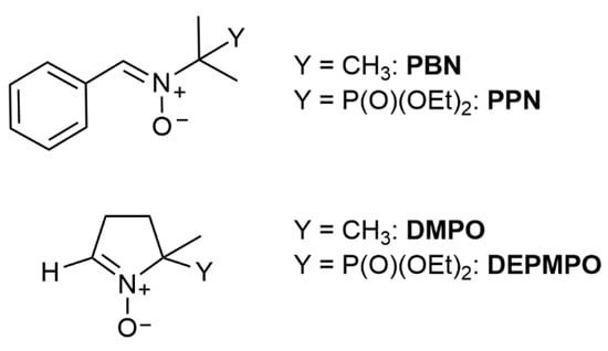 Several spin traps can be used to obtain complementary information on a PIS photolysis. The most common are either nitroso compounds or nitrones, which can be linear or cyclic. All of them lead to the formation of nitroxide radicals.