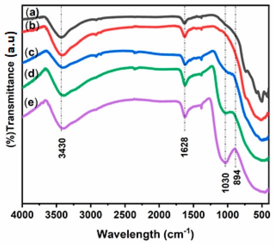 Fourier Transform Infrared spectra (FTIR) were recorded in the 4000 −400 cm−1 range using a VERTEX-70 spectrophotometer (Boston, MA, USA) with 4 cm−1 resolution.