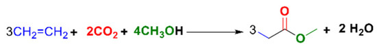 3. Khokarale, S.G.; Mikkola, J.P. Efficient and Catalyst Free Synthesis of Acrylic Plastic Precursors: Methyl Propionate and Methyl Methacrylate Synthesis through Reversible CO2 Capture. Green Chem. 2019, 21, 2138–2147. [Google Scholar] [CrossRef]